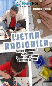 The NanoPoli Center’s “Art Through the Prism of Science” class begins a new period of work, further nurturing the creativity, knowledge and imagination of its students. The previous year was full of experiences and memories that solemnly ended with an exhibition on August 22nd organized by our teacher, prominent artist, Tatjana Ratković Bosnić. We share here a few pictures from this event, which took place in a wonderful atmosphere. We would also like to thank the Faculty of Science for their continued cooperation and mutual support.